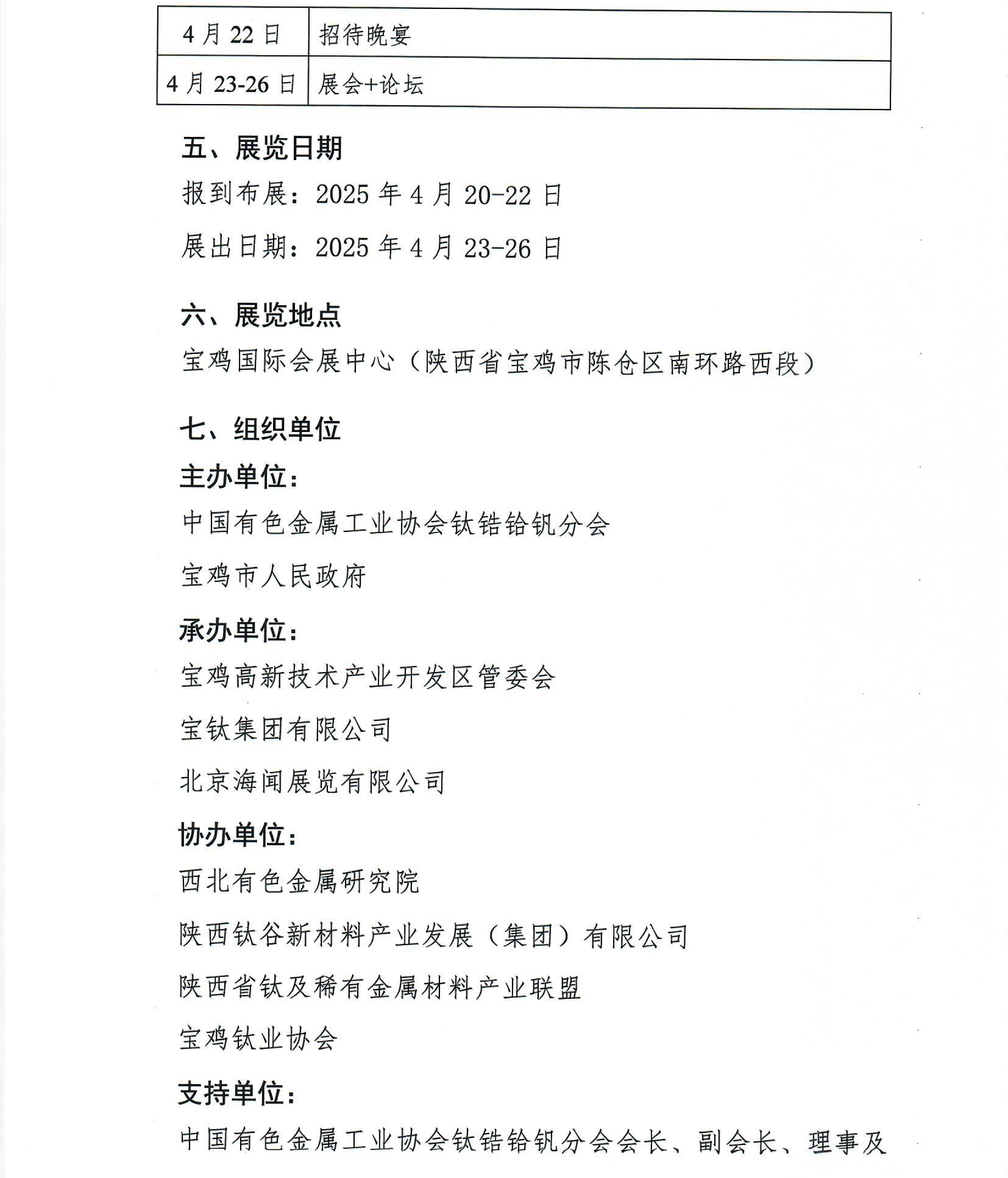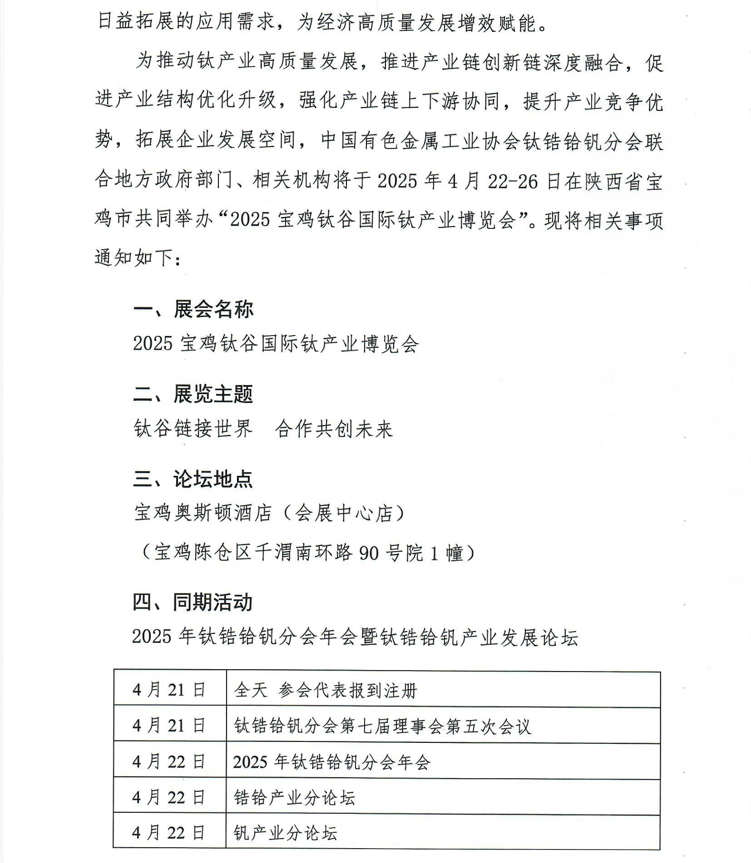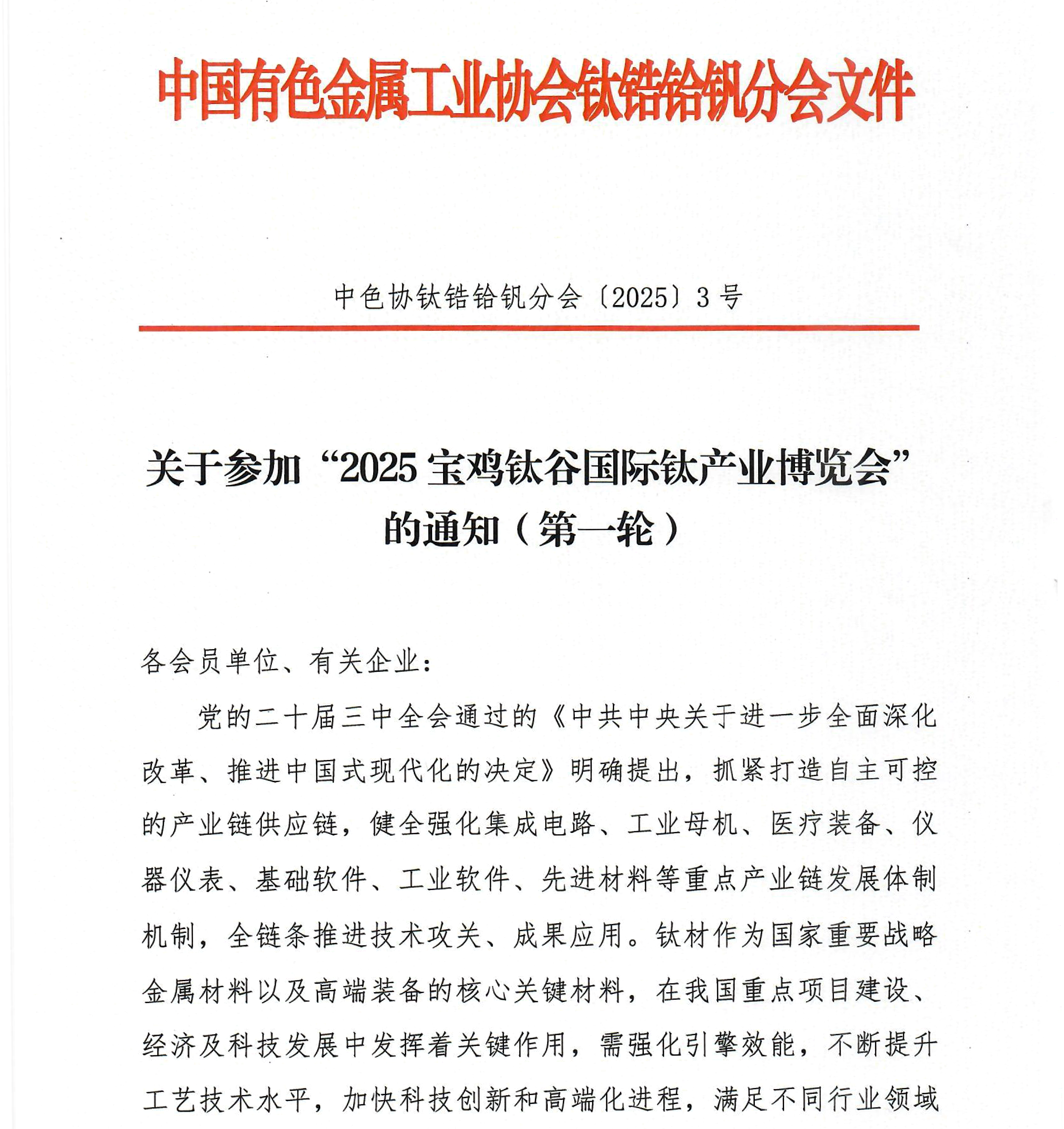 关于参加“2025宝鸡钛谷国际钛产业博览会”的通知(第一轮)
