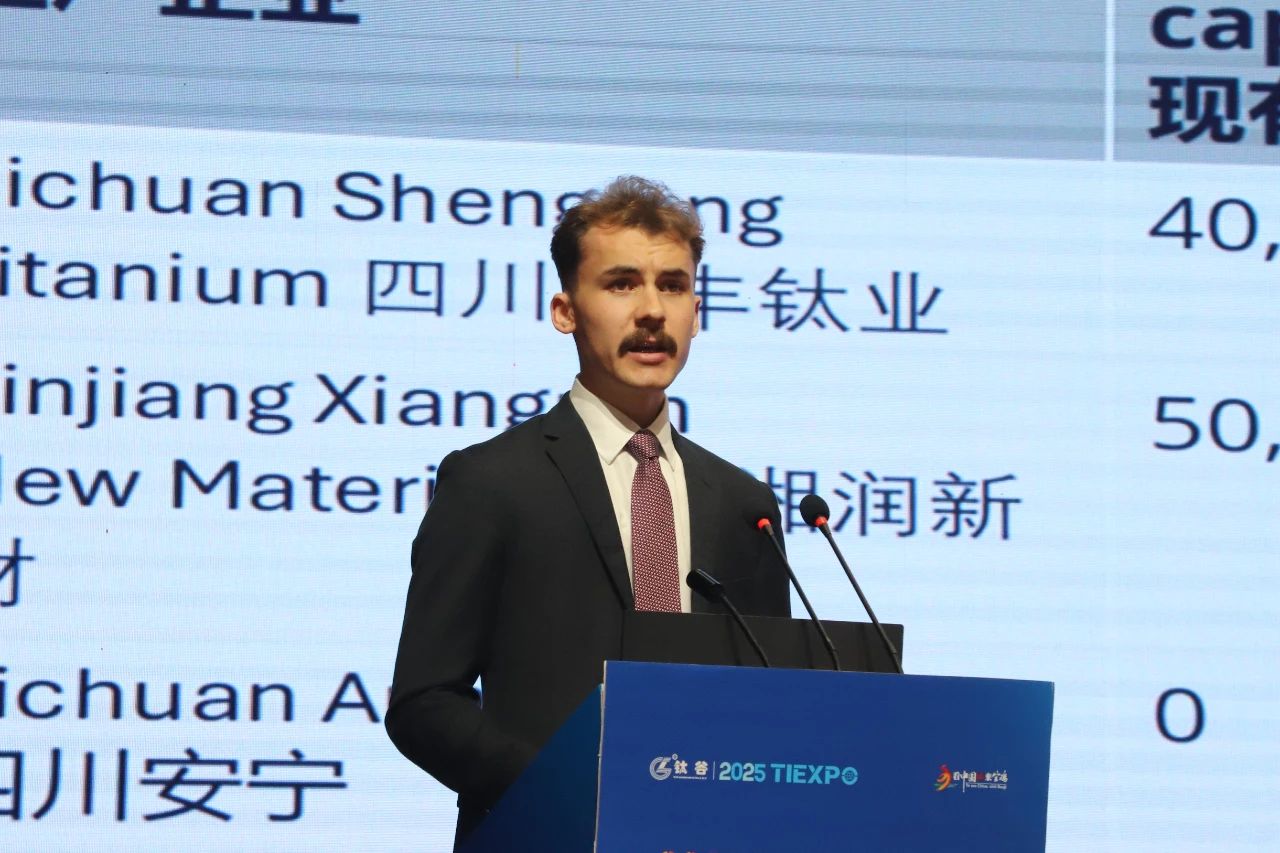 在主旨演讲环节,中国有色金属工业协会钛锆铪钒分会副会长兼秘书长安仲生,安德烈·亚历山大洛夫,全国有色金属标准化技术委员会秘书长赵永善,宝鸡钛业股份有限公司副总经理陶海林,攀钢集团有限公司党委常委、副总经理杜斯宏,阿格斯金属网高级分析师Samuel Wood分别围绕钛产业发展现状、行业标准现状、科研创新进展、钛合金及工程化关键技术、钛材在航空航天中的应用等议题,分享了最新的研究成果和前沿观点。该环节由王俭主持。
