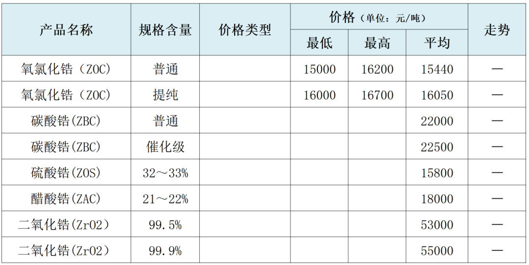 锆市场价格