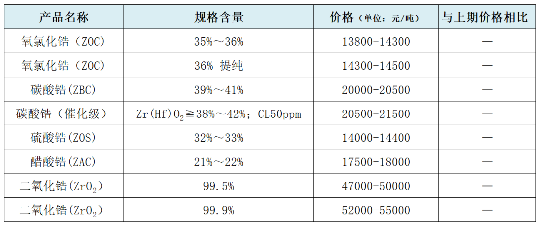 锆市场价格